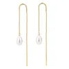 Nava lange Perle ketten ohrringe in vergoldetem Sterlingsilber mit 2 weißen Perlen. Modell: Kiki