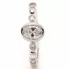 ovaler Zirkon Ring aus rhodiniertem Silber mit polierter Oberfläche und 5 weißen Zirkonen mit Facettenschliff.