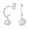 Perle Halbkreolen in Silber mit polierter Oberfläche 2 weißen Perlen.