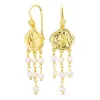 weißem Perle Ohrringe in vergoldetes Messing mit gebürsteter und strukturierter Oberfläche und 14 weißen Süßwasserperlen.