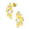 Perle Ohrringe in vergoldetes Messing mit stahlgebürsteter Oberfläche 2 weißen künstlichen Perlen.
