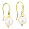 Perle Ohrringe in vergoldetes Messing mit polierter Oberfläche 2 weißen künstlichen Perlen.