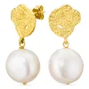Perle Ohrringe in vergoldetes Messing mit strukturierter Oberfläche 2 weißen Perlen.