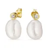 Perle Ohrringe in vergoldetem Silber mit polierter Oberfläche und 2 Facettenschliff weißen Zirkonen 2 weißen Süßwasserperlen.