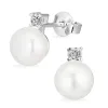 Perle Ohrringe in Silber mit polierter Oberfläche und 2 Facettenschliff weißen Zirkonen 2 weißen Süßwasserperlen.
