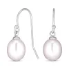 7-7,5 mm Perleohrringe in rhodiniertem Silber mit polierter Oberfläche und 2 lavendelfarbenen Süßwasserperlen.