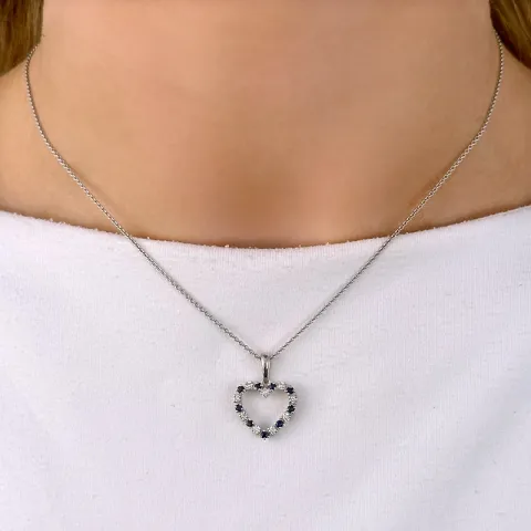 Herz Saphir Anhänger in 14 karat Weißgold mit polierter Oberfläche und 9 Brillantschliff Diamanten WESSELTON/SI 0,20 ct und 9 Facettenschliff blauem Saphiren 0,29 ct.
