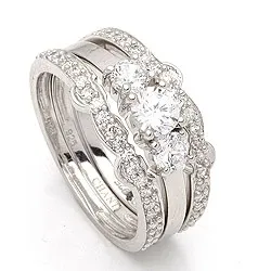 drei-in-einem Ring aus Silber mit polierter Oberfläche und weißem Zirkon mit Facettenschliff.