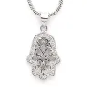 fatimas Hand Anhänger aus Silber mit polierter Oberfläche und weißem Zirkon mit Facettenschliff.