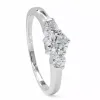 runder Zirkon Ring aus rhodiniertem Silber mit polierter Oberfläche und 3 weißen Zirkonen mit Facettenschliff.