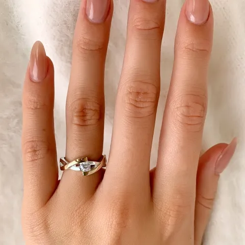 weißem Zirkon Ring aus Silber mit 8 karat Gold mit polierter Oberfläche und 1 weißen Zirkonen mit Facettenschliff.