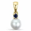 Perle Anhänger in 9 karat Gold mit polierter Oberfläche und 1 Facettenschliff Saphiren 0,07 ct und 1 Rund weißen Süßwasserperlen.