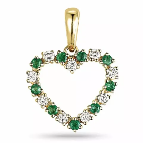 Herz Smaragd Anhänger in 14 karat Gold mit polierter Oberfläche und 9 Facettenschliff Diamanten WESSELTON/SI 0,20 ct und 9 Facettenschliff Smaragden 0,24 ct.