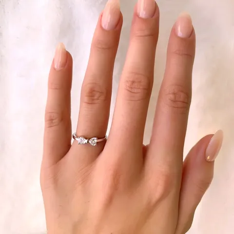 Schleife Zirkon Ring aus Silber mit polierter Oberfläche und 2 weißen Zirkonen mit Facettenschliff.