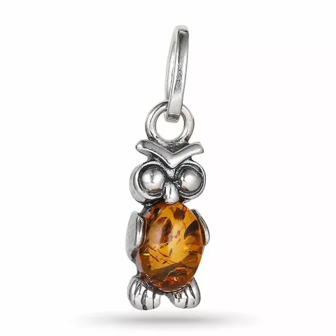 Eule Bernstein Anhänger aus Silber mit polierter Oberfläche und 1 rotbraunem Bernsteinen mit Cabochon-Schliff.