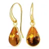 synthetisch Bernstein Ohrringe in vergoldetem Silber mit polierter Oberfläche und 2 Cabochon-Schliff braunen synthetisch Bernsteinen.