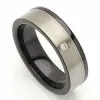 Trauring in schwarz Stahl und Stahl mit 1 Brillantschliff Diamanten Wesselton/VS mit ingesamt 0,020 ct.