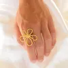 Wasserfest Blumen justierbar Ring aus vergoldetem Stahl mit polierter Oberfläche.