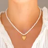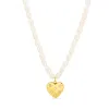 Wasserfest Herz Halskette aus vergoldetem Stahl mit polierter Oberfläche und weißem Zirkon mit Facettenschliff und weißem künstliche Perle.