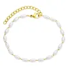 Wasserfest Perle Armband aus vergoldetem Stahl mit polierter Oberfläche weißem künstliche Perle.