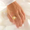 Wasserfest Perle justierbar Ring aus vergoldetem Edelstahl mit polierter Oberfläche.