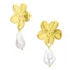 Wasserfester Blumen Ohrringe in vergoldetem Stahl mit polierter Oberfläche 2 weißen Perlen.