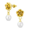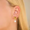 Wasserfester Blumen Ohrringe in vergoldetem Stahl mit polierter Oberfläche 2 weißen Perlen.