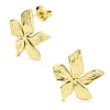 Wasserfester Blumen Ohrringe in vergoldetem Stahl mit stahlgebürsteter Oberfläche.