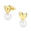 Wasserfester Herz Ohrringe in vergoldetem Stahl mit polierter Oberfläche 2 weißen Perlen.