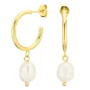 Wasserfester Perle Halbkreolen in vergoldetem Stahl mit polierter Oberfläche 2 weißen künstlichen Perlen.