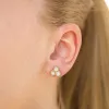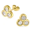 Wasserfester Zirkon Ohrstecker in vergoldetem Stahl mit polierter Oberfläche und 6 Facettenschliff weißen Zirkonen.