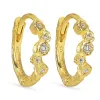 Zirkon Kreole in vergoldetes Messing mit strukturierter Oberfläche und Facettenschliff weißem Zirkon.
