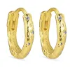 Zirkon Kreole in vergoldetes Messing mit matter Oberfläche und Facettenschliff weißem Zirkon.