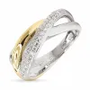 Zirkon Ring aus rhodiniertem Silber mit vergoldetem Sterlingsilber mit polierter Oberfläche und 36 weißen Zirkonen mit Facettenschliff.